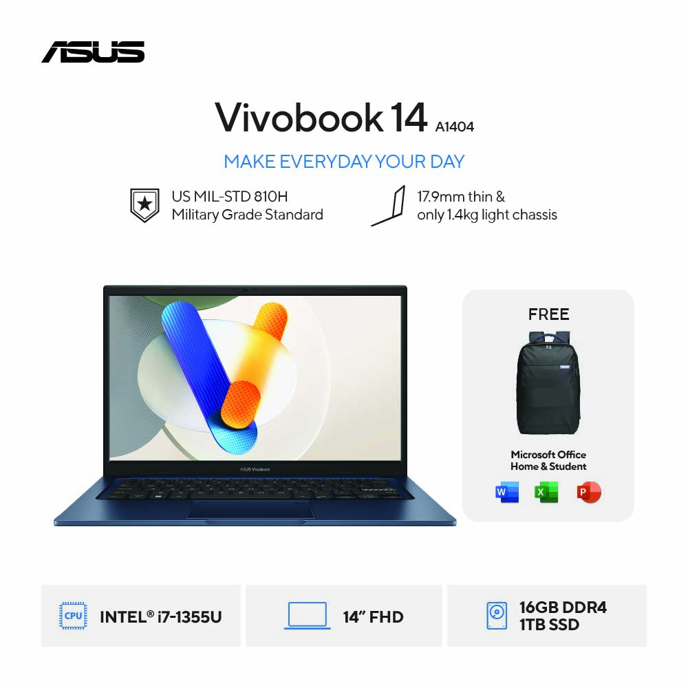 Asus Vivobook 14 A1404VA-VIPS711 [i7-1355U|RAM 16GB|SSD 1TB|Win11|OHS21|Blue]